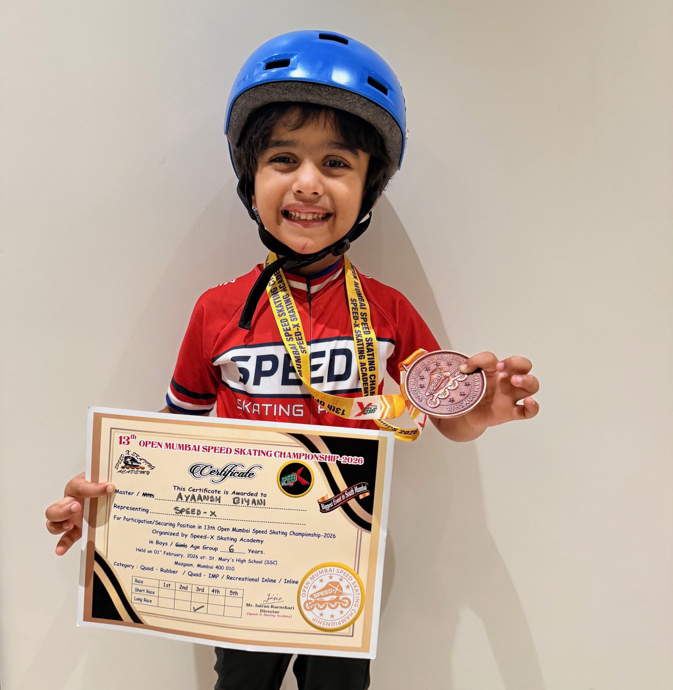 Ayaansh Biyani Secures 3rd Place at the 13th Open Mumbai Speed Skating Championships