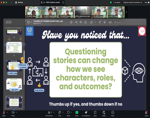 Within the breakout rooms, delegates reimagined classic fairytales from the perspective of the “villain,” while distinguishing fairy tales from other literary forms such as mythology and short stories. They also examined how cultural identity influences storytelling and debated whether stereotypes shape perspectives or whether perspectives shape stereotypes. The engaging and interactive discussions allowed delegates to move beyond passive listening. Instead, they analysed motivations, questioned assumptions, and explored how context alters understanding.
