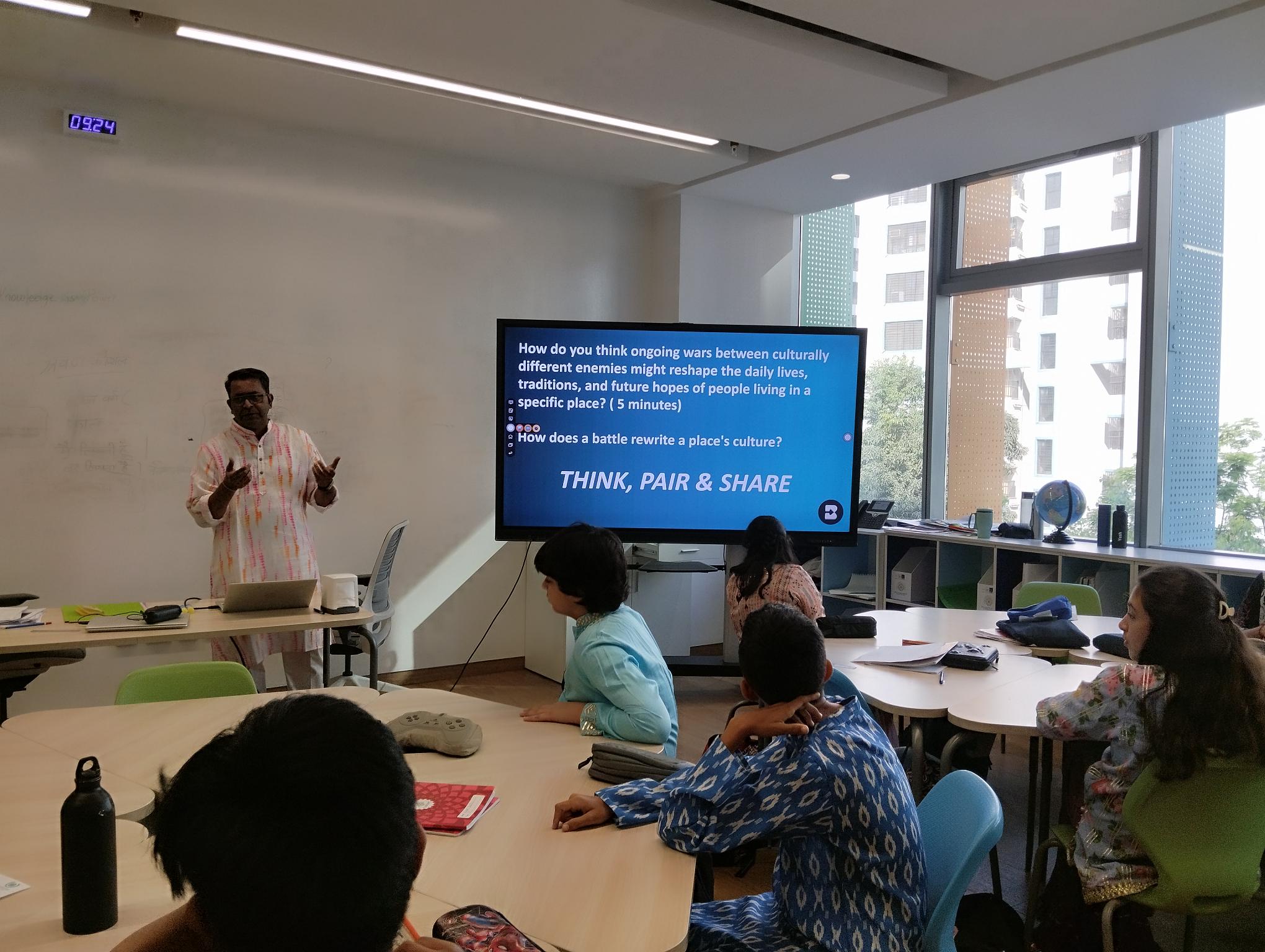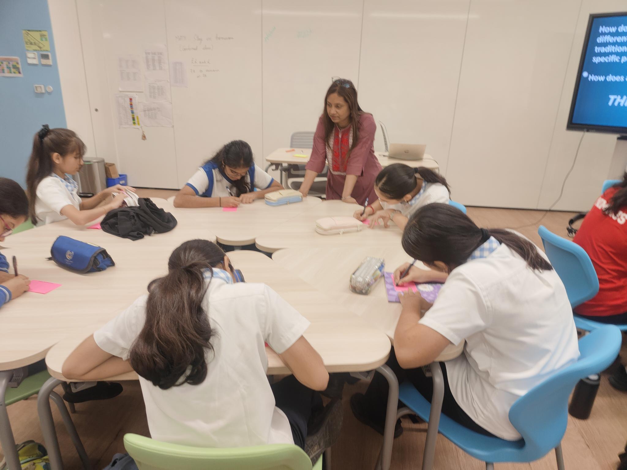 Classes 7A and 7B explored their unit “What’s in Your Neighbourhood?” through a bilingual Learning Centre activity on the Battle of Vasai (1739). Students used English resources to understand the historical event and then created posters with Marathi headings and key points. They researched the Maratha victory and its impact on Vasai Fort and the nearby Vasai–Virar villages, connecting local ruins, cannons, and churches to the area’s identity today. The activity helped students build research skills, work collaboratively, and develop a deeper connection to the history of their own neighbourhood.