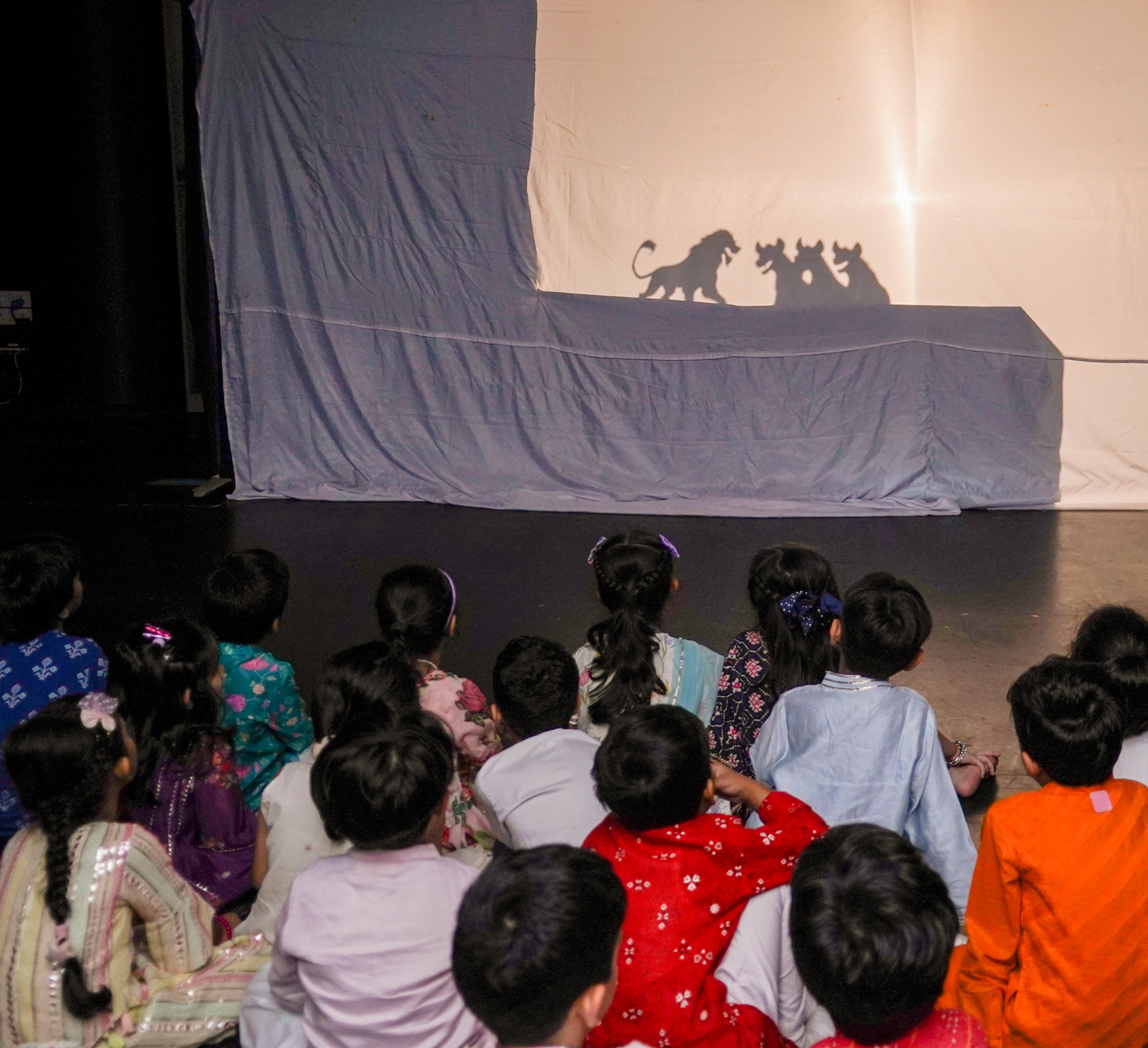 As the characters appeared as shadows on the screen, students watched with great excitement, developing listening skills, creativity, and an understanding of storytelling. The session encouraged curiosity, active engagement, and thoughtful responses throughout the performance.