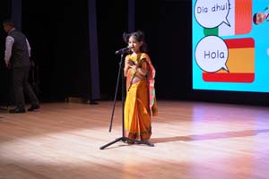 Our PYP students charmed the audience with heartfelt songs and recitations in a variety of languages, including Gujarati, Marathi, Spanish, Marwari, Sindhi, Tamil, Mandarin, and Thai. Their performances beautifully reflected how language connects us to our roots while opening windows to new cultures and traditions. Each recital was thoughtfully prepared, highlighting the nuances of pronunciation, rhythm, and cultural context, allowing students to experience both the joy of self-expression and the pride of representing their heritage. Echoes of Culture was not only a tribute to multilingualism but also a reminder that understanding and appreciating languages help us build a more connected and compassionate world.