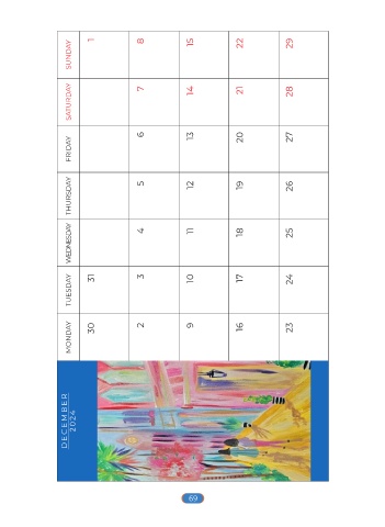 SUNDAY 5 12 19 26 SATURDAY 4 11 18 25 3 10 17 24 31 FRIDAY THURSDAY 2 9 16 23 30 WEDNESDAY 1 8 15 22 29 7 14 21 28 TUESDAY MONDAY 6 13 20 27 J A N U A R Y 2025 70